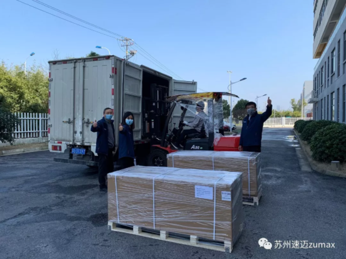 苏州速迈已经火力全开,我们的产线已经恢复生产,复工第一单已经发出,远赴匈牙利;希腊、法国、爱沙尼亚、波兰、意大利、巴西、德国、西班牙、美国、日本等地的订单,在苏惠10条、苏惠外12条的大力保障下,将在最近几天陆续发出。