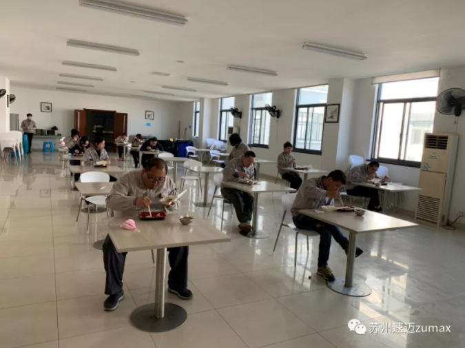 复工第一天,各部门开启了新的工作模式,线上会议,线上培训,在避免近距接触的前提下,确保各项工作有序、高效开展。严格执行无接触式分菜分饭的分散就餐制度,一人一桌,分批就餐。