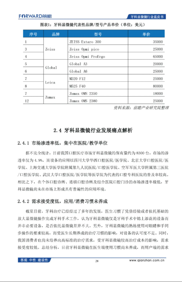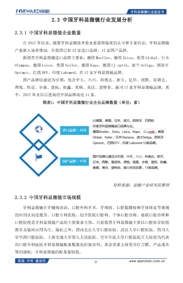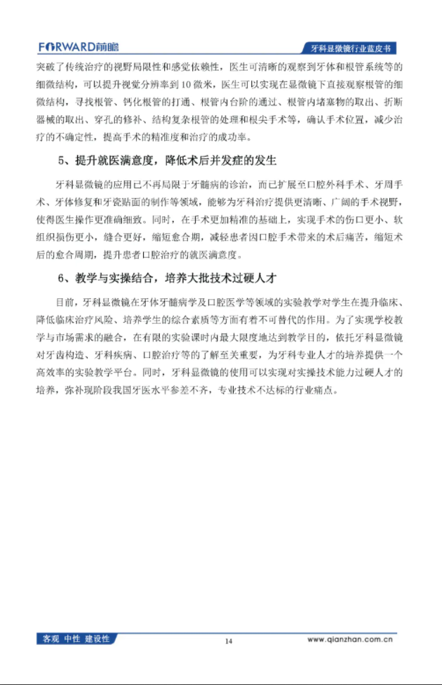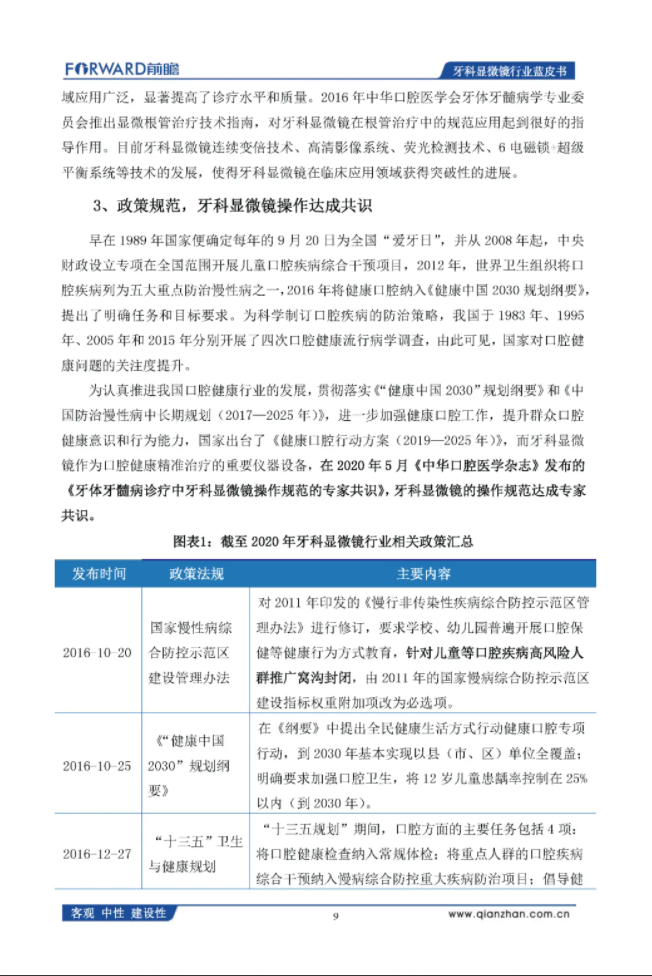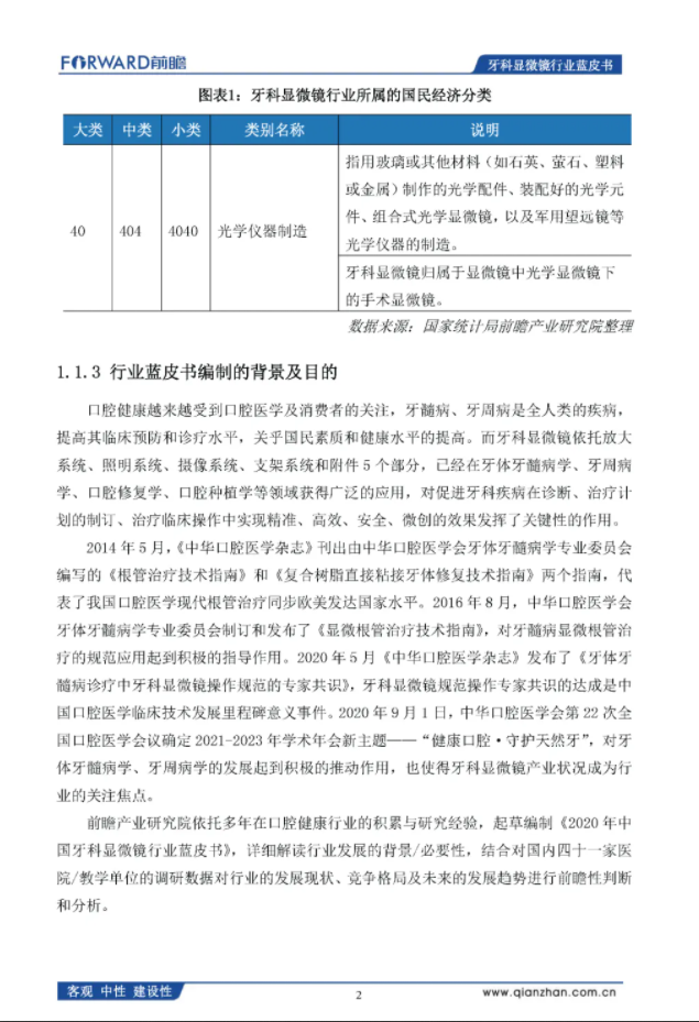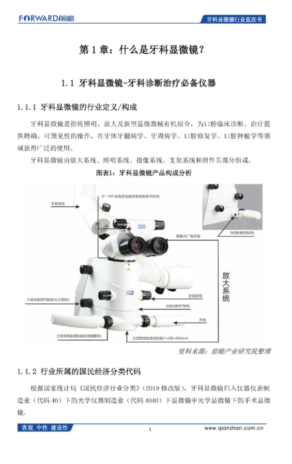 前瞻产业研究院:2020年中国牙科显微镜行业蓝皮书