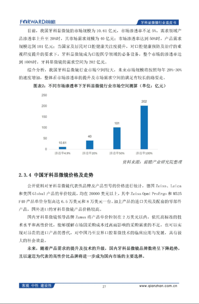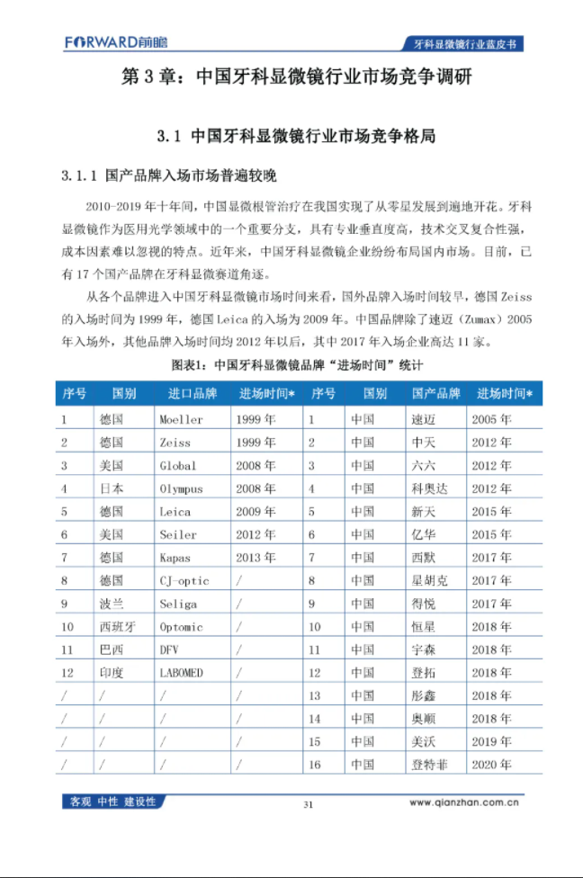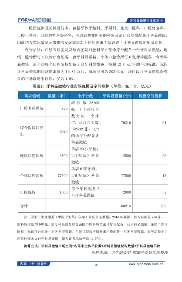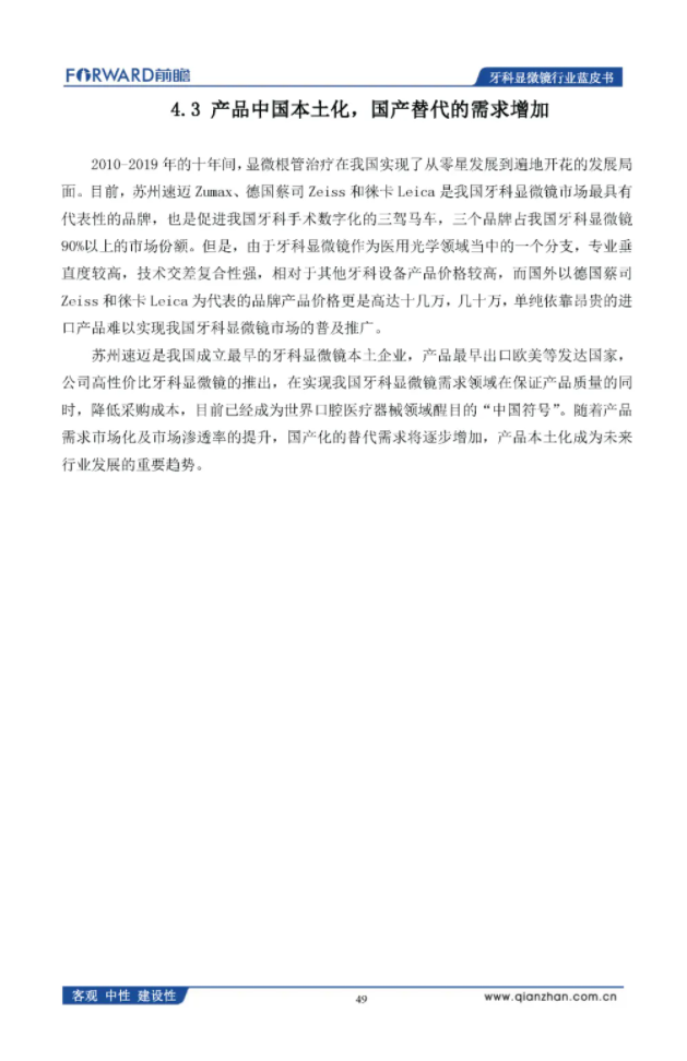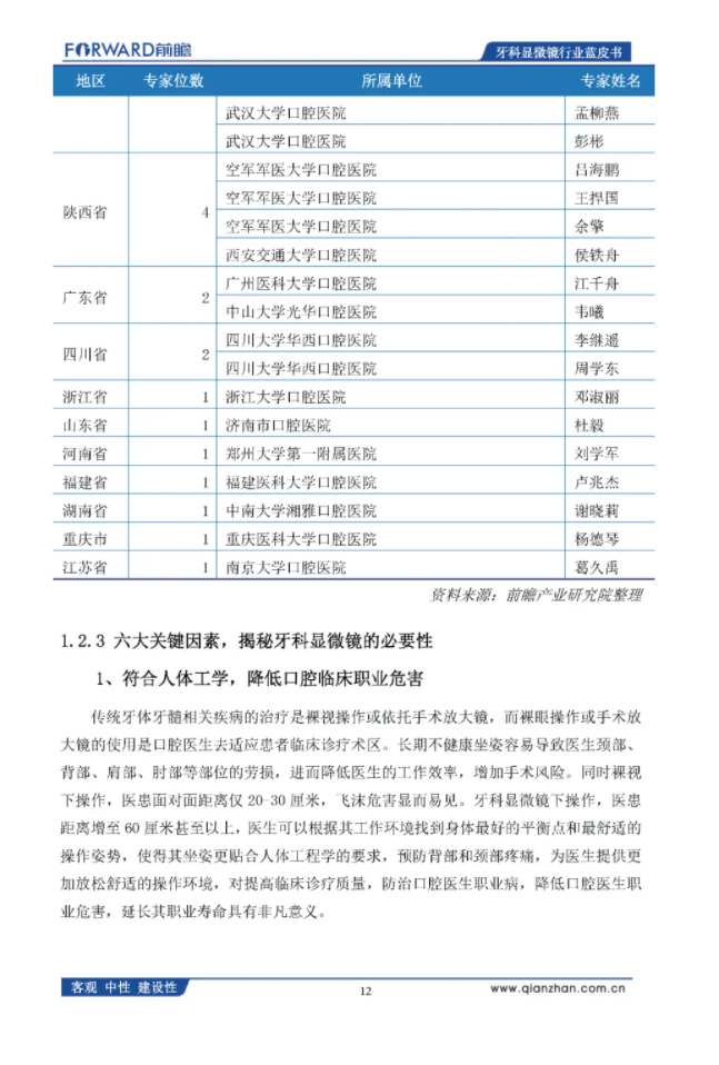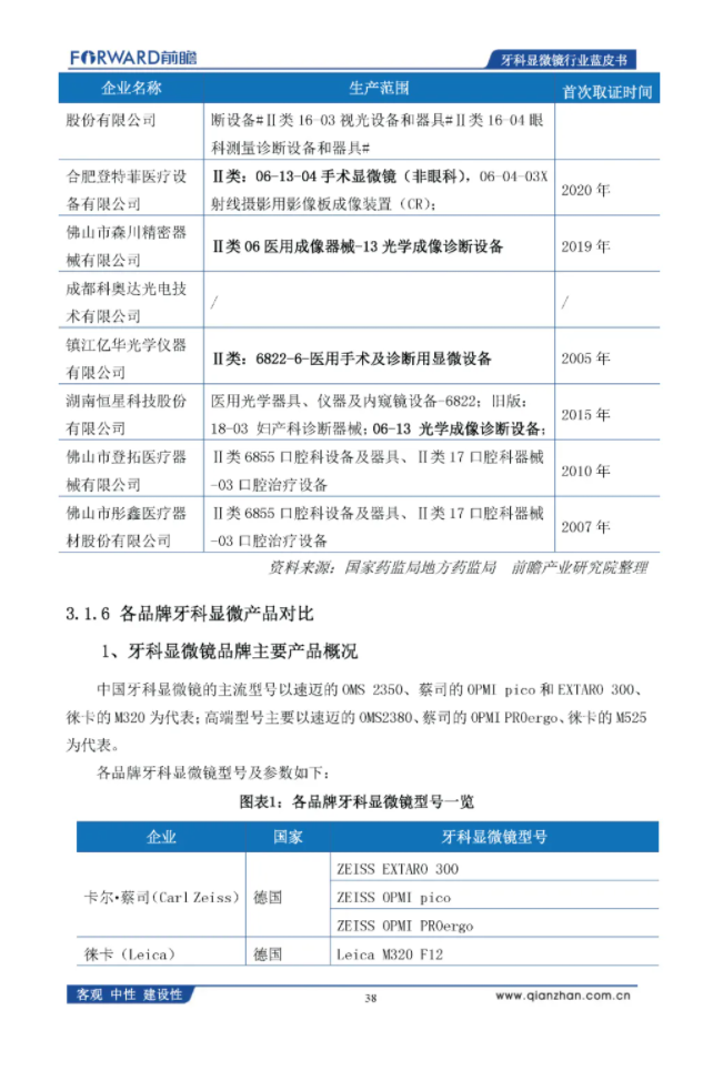 前瞻产业研究院:2020年中国牙科显微镜行业蓝皮书