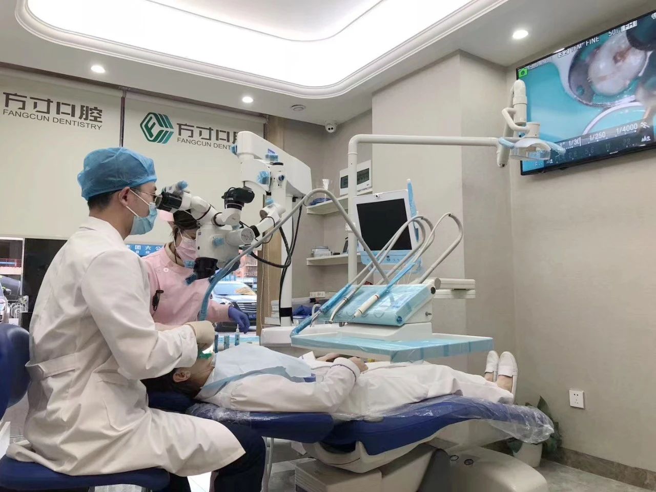 在中南大学湘雅口腔医院进修结束后,钟亚医生就在团队会议上提出要开展口腔显微治疗项目并得到了大家的一致认可和支持,并在开诊最早的东方新城门诊率先立项实施,至今已成功开展了为期三年多的口腔显微治疗项目,并成为门诊常规治疗项目之一。之后 2017年的藏珑门诊、2020 年新开诊的北辰门诊都相继开展了口腔显微治疗项目,得到了广大患者的认可和好口碑。相比目前很多民营医疗机构设备买回去之后“落灰”的情形,方寸口腔在口腔显微治疗项目上迅速取得成功,这着实让众多口腔同行们羡慕不已。