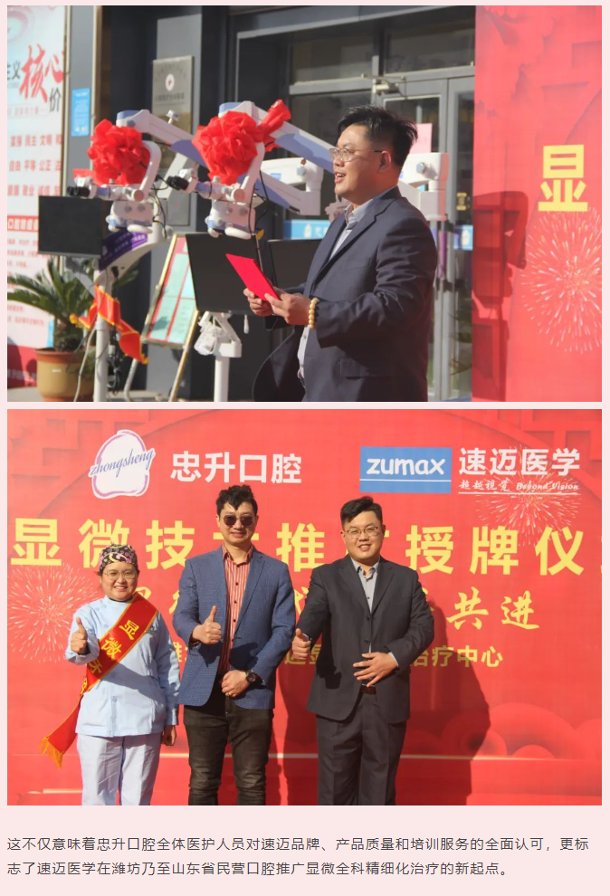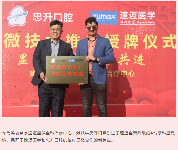 显微赋能 携手共进 | 速迈医学与潍坊忠升口腔显微全科治疗中心 授牌活动成功举办!