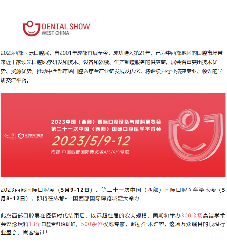2023西部口腔展 | 五月星光汇聚成都 赴一场初夏之约