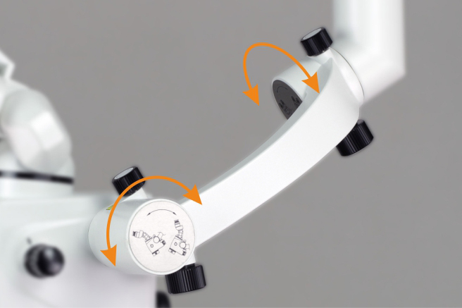 双目镜筒保持水平观察位置的同时镜身向左或向