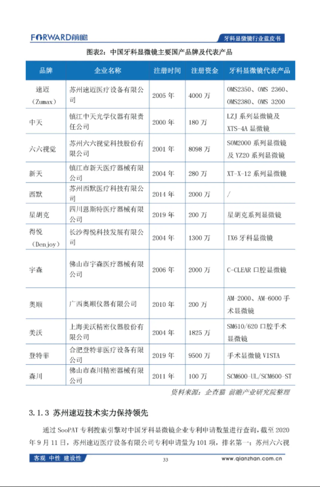 前瞻产业研究院:2020年中国牙科显微镜行业蓝皮书