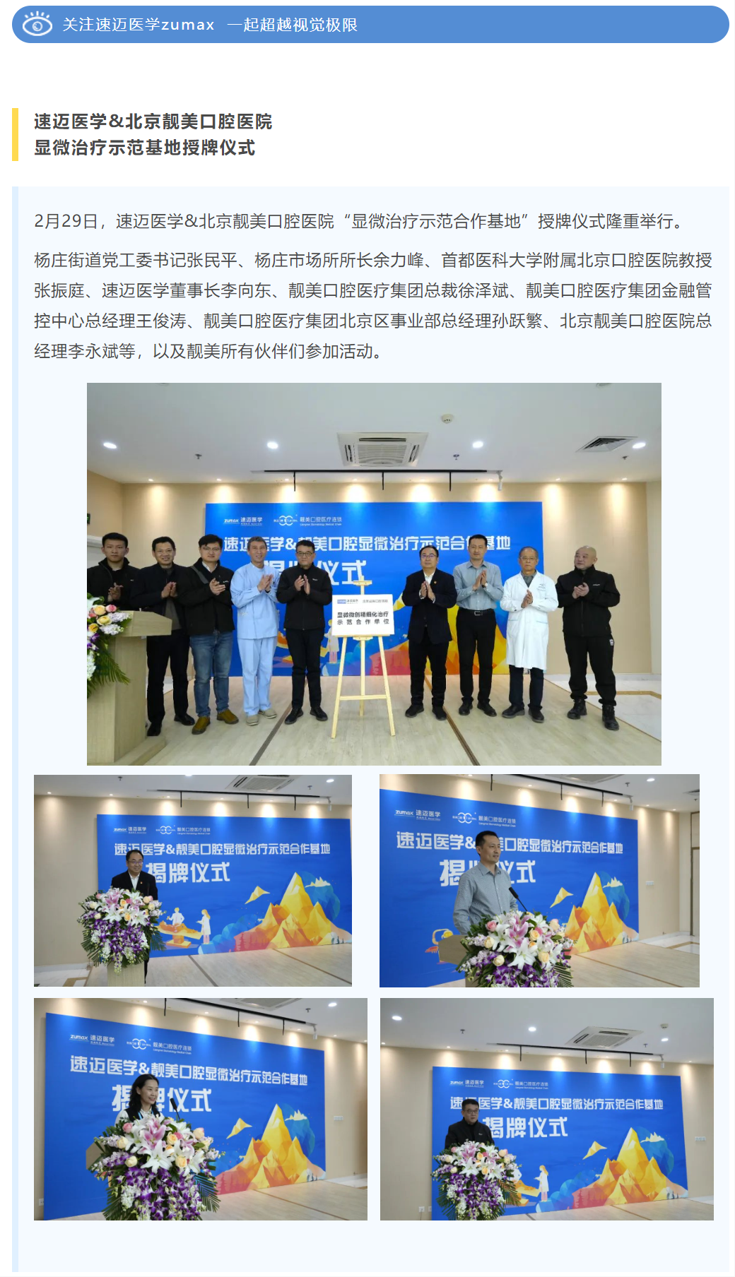 显微赋能 | 速迈医学&北京靓美口腔医院“显微治疗示范合作基地”授牌仪式成功举办