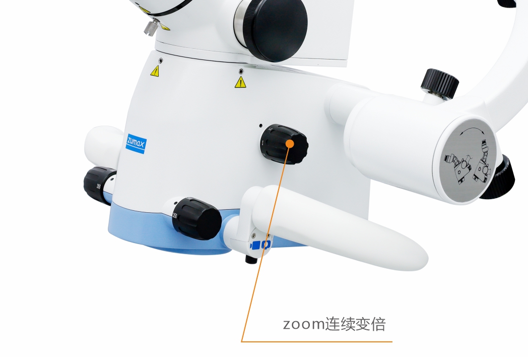 位于显微镜镜身两侧的连续光学变倍旋钮,可快速连续调整放大倍率。